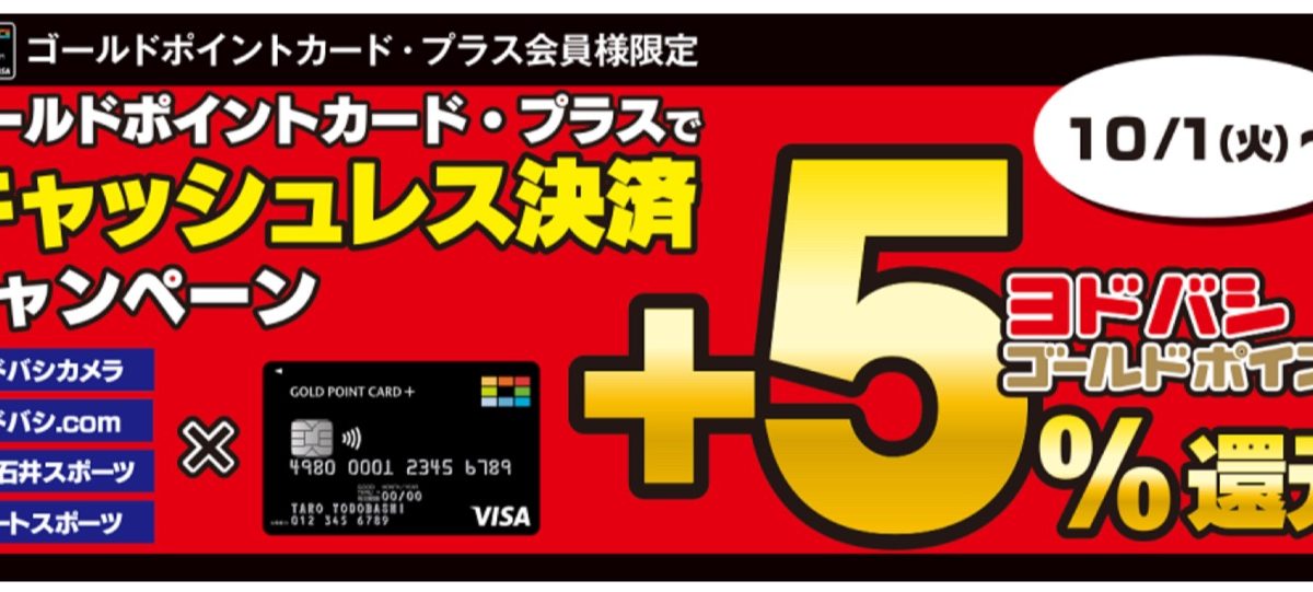 キャッシュレス決済というとPayPayやLINE Payなどが積極的にキャンペーンを開催していますが、ヨドバシも10月1日より「ゴールドポイントカード・プラスでキャッシュレス決済キャンペーン」を開始しています。