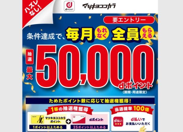 さらにdポイントが毎月最大5万ポイント当たるキャンペーンも開催中です!